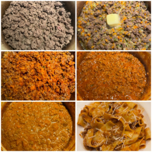 According to my friend Mike Puma at Gotham Burger Social Club, he claims that the original recipe for bolognese sauce did not contain tomato sauce, but tomato paste. I did not take the time to research it, but as a fellow Italian who probably did, I am going to take his word for it. Even if not, this is a fantastic recipe worthy of trying. It is not hard, and only takes very little patience. Please don’t think this is a recipe you can have prepared within an hour or so. Give it the full time and attention it needs to cook correctly.